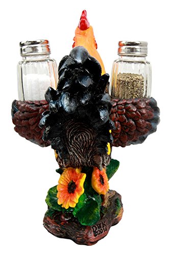 This rooster salt pepper shakers holder is an exotic representation of the morning bringer farm wake up call agent. This rooster is unique because not only does its hen lay eggs for you, it gives you the salt and pepper seasonings you need to complete your meal too!