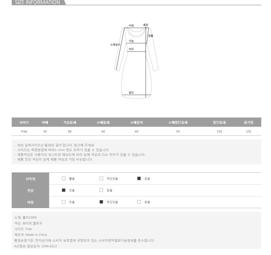 컬러는 화이트,옐로우 2color로 구성되어 있으며, 모델의 착용 컬러는 옐로우,화이트 입니다.