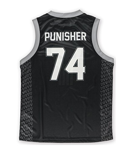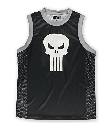 Item Description: Athletic poly tank top Large Punisher graphic on front Graphic numbers and text on back Graphic covered side panels