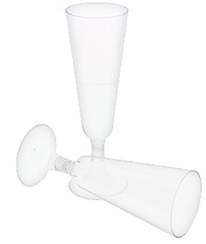 Product Description If the occasion calls for champagne, then the occasion probably calls for plenty of champagne glasses. And, because creating a special occasion is really about creating a special mood, We are committed to offering high quality party essentials with an upscale look and feel at an affordable price.These 30 crystal clear 2-piece hard plastic champagne glasses have an elegant, timeless appeal. The glass and base fit together easily and snugly; their graceful shape showcases the delicate effervescence of sparkling champagne. So whether it's a wedding, simple neighborhood get together, holiday soiree or an easy clean-up romantic dinner for two. 2-piece hard plastic 5 ounce flutes have an elegant, timeless appeal. Each package contains 30 easy-to-assemble flutes. The base and glass fit together easily and snugly and the convenient 2-piece construction makes storage a breeze. 0