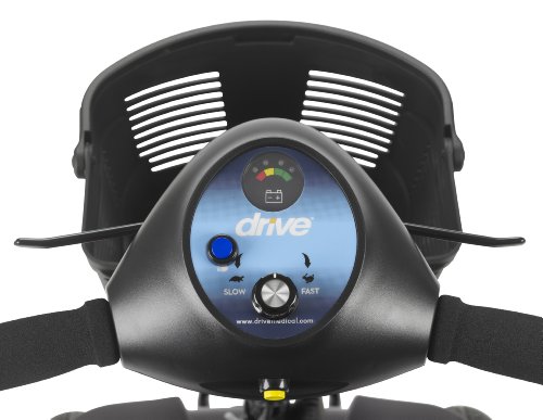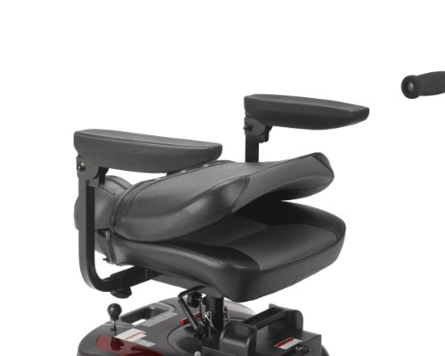 - Feature : Quick and easy disassembly with quick connect batteries; Includes interchangeable color panels in Red and Blue / Comes with headlight and large, plastic carry basket / Height-adjustable swivel seat with two-tone upholstery and fold-down backrest; Armrests are padded and adjustable / Easy-to-adjust tiller / Ergonomic throttle control with easy freewheel operation; Flat-free, non-marking tires and anti-tip wheels