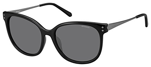 Polaroid Sunglasses Women's Pld4048s Oval, Shiny Black/Gray Polarized, 56 mm