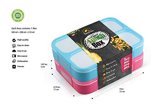 BENTO BOX SET comes with 1 light blue and 1 pink lunch box to suit any taste male and female