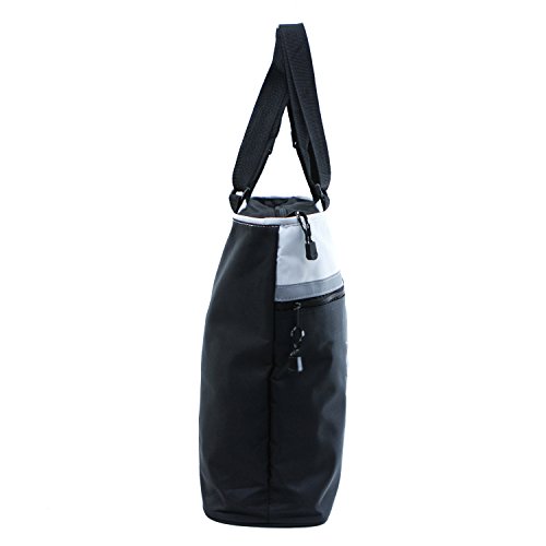 -. Feature : Stylish microfiber jumbo tote teacher bag, is the perfect gift for new teachers or to show your appreciation and say thank you to all teachers / Measuring 21" wide, 15" high, and 6" deep at the bottom, it's big and sturdy enough to carry a purse, shoes, lunch, binders, notebooks, and much more / Zippered inner and outer pockets make it easy to organize and separate supplies / 26" Adjustable shoulder strap allows you to customize for comfort / Made of black microfiber, with a stylish gray and white trim