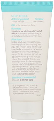 -. Binding : Health and Beauty -. Brand : Proactiv -. EAN : 0735786015312 -. Feature : Contains acne fighting salicylic acid to help clear up acne blemishes and prevent new ones from forming / Formulated with a skin brightening complex to help give the appearance of even skin tone and radiant-looking / Helps to reduce redness and irritation / Designed to absorb excess oil on the skin to help mattify and give it a smoother-looking appearance / Designed to reduce the appearance of pores by helping to keep them clear -. IsAdultProduct : 0 -. Label : Guthy Renker -. Manufacturer : Guthy Renker -. Model : 817919J6083 -. MPN : B00SUWFDIO -. PackageQuantity : 1 -. PartNumber : B00SUWFDIO -. ProductGroup : Beauty -. ProductTypeName : BEAUTY -. Publisher : Guthy Renker -. ReleaseDate : 2015-03-06 -. Size : 3 Ounces -. Studio : Guthy Renker -. Title : Proactiv+ Complexion Perfecting Hydrator, 3 Ounce (90 Day) -. UPC : 735786015312