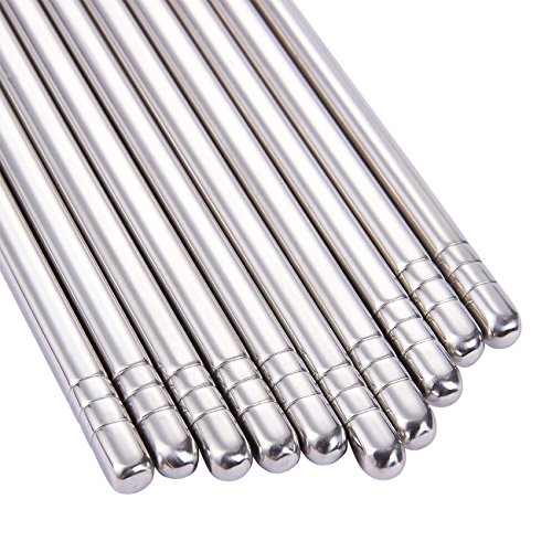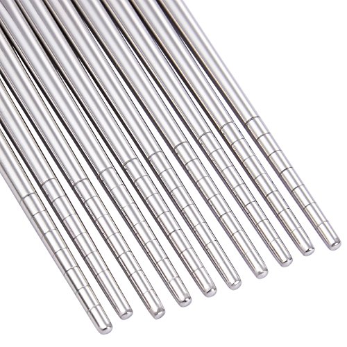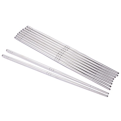 - 5 PAIRS OF STAINLESS STEEL CHOPSTICKS: This set of 5 pairs of stainless steel chopsticks is moisture proof, weather resistant and crack resistant. Indulge your Asian food frenzies with these traditional-style chopsticks!