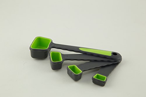 - • 4 SILICONE MEASURING TABLESPOONS & TEASPOONS: 1 tbsp. /15ml, 1 tsp/5ml, ½ tsp/2.5ml, ¼ tsp/1.25ml. Plastic compact design spoon