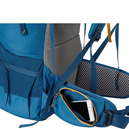 -. Feature : Adjustable yoke shoulder strap system for multi-size torso fitment / Separate sleeping bag compartment with internal divider / Smartphone compatible waistbelt pocket (Fits up to iPhone 5 and Galaxy S5) / Sized for small adult & adolescent torso sizes / PE Framesheet with X configuration AL Stays and horizontal stabilizer bar