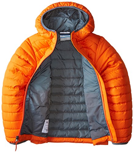 The Columbia boys powder light puffer is an ultralight, toasty jacket with faux down insulation, a water-shedding shell and clean, subtle style. Ultra-light faux down meets a mix of thick and thin baffling lines and a sleek, durable shell fabric for supreme toasty warmth with style. The powder lite puffer jacket is also treated with water-repellent Omni-shield technology to keep you dry and protected during wet weather.Feature