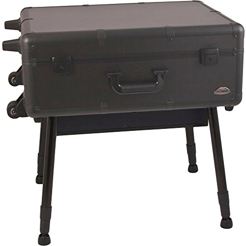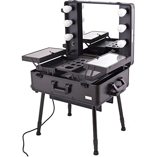 Sunrise Pazienze Lighted Rolling Makeup Case Professional Nail Travel Wheel Organizer, Black Matte, 36 Pound