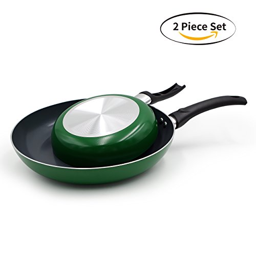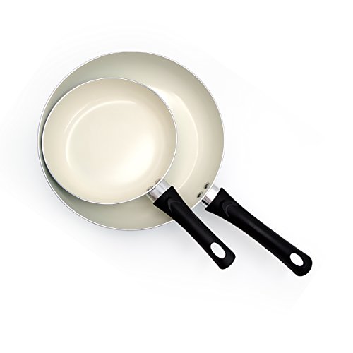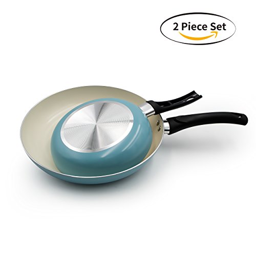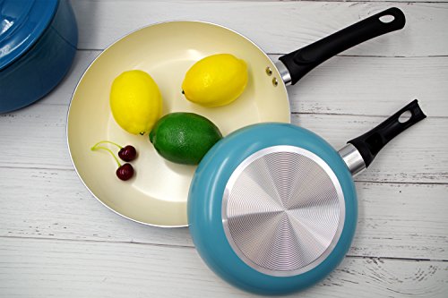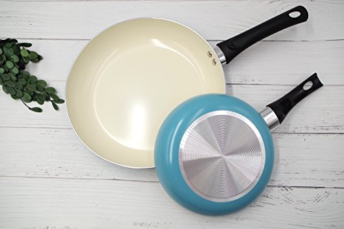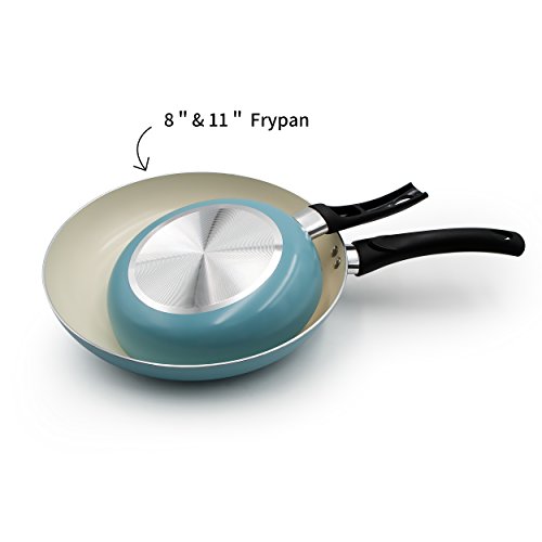 Set of 2 includes 8" and 11" fry pans. Color : cream white inner and turquoise outer.