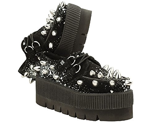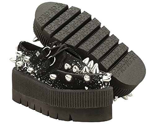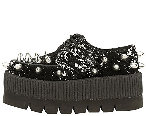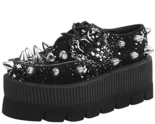 Binding : Apparel Product Description You have never had a pair of shoes like these! These out of this world creepers will grab everyones attention! Rock out with your band or even at school with your own look that no one else can duplicate! These creepers are made with black suede and a white graffiti spray design and large metal cone studs. The heel on these measures 3" in the back and 2.5" tall in the front. Available in men's sizes 3-9. [Featured by Leeanna Vamp of I Love Nerd Girls!] 0