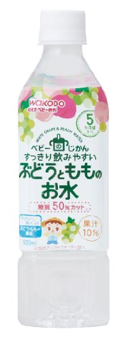 すっきり飲みやすい飲料です。5ヶ月頃から。糖質50%カット※。やさしい、おいしいぶどうとももの風味です。※当社アップルウォーター比べ