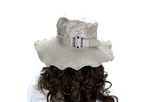 -. Title : Noonies Boutique Greyish Brown Flutter Trim Straw Hat 15'' w/ 4'' Brim