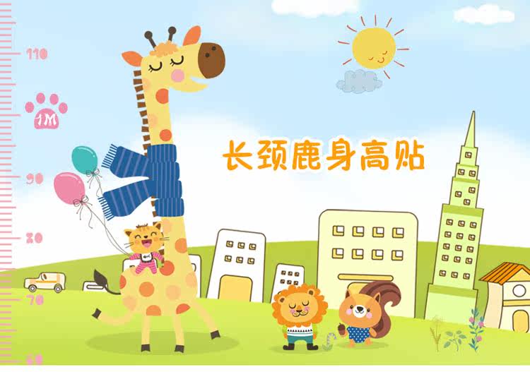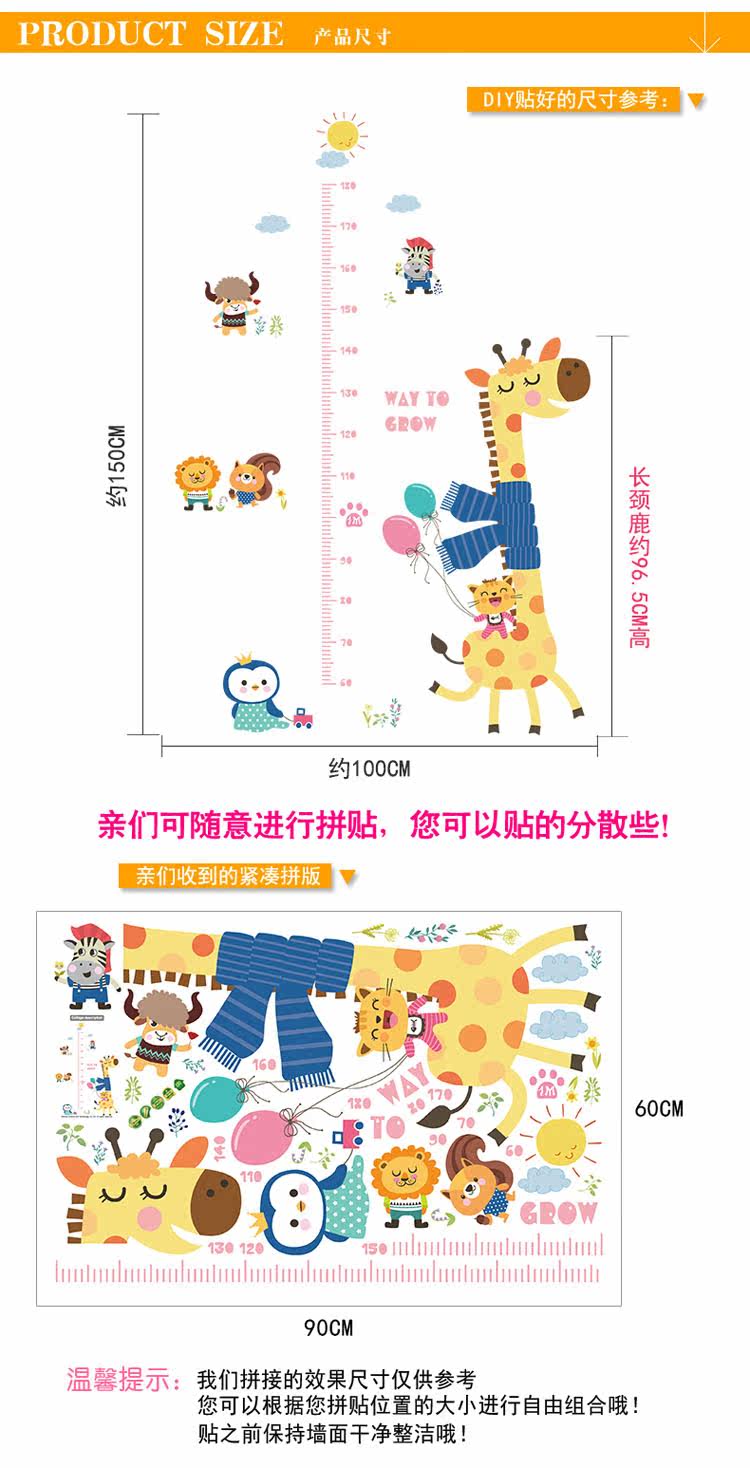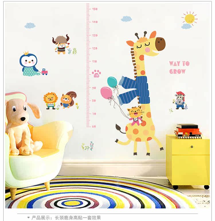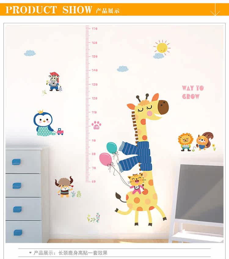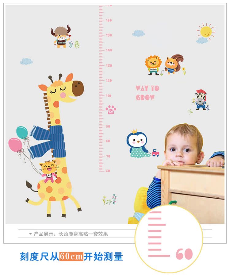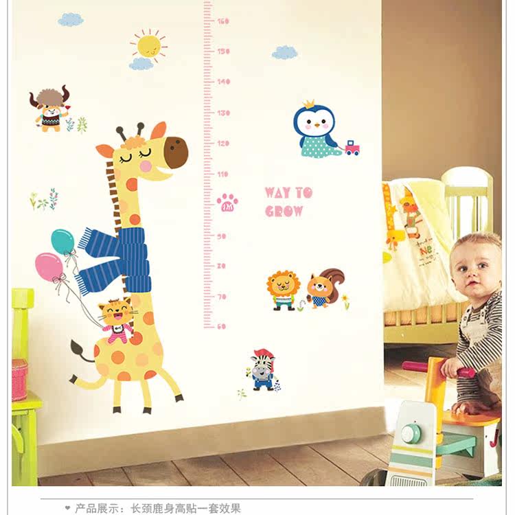 可爱卡通长颈鹿身高贴儿童房装饰墙贴宝宝量身高贴纸幼儿园布置贴