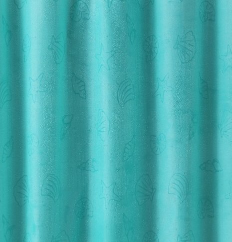 Vibrant color shower curtain that changes when wet. Ocean shore shells magically appear!
