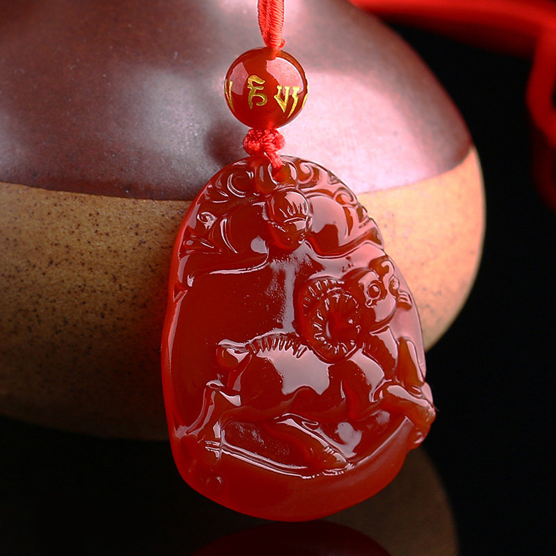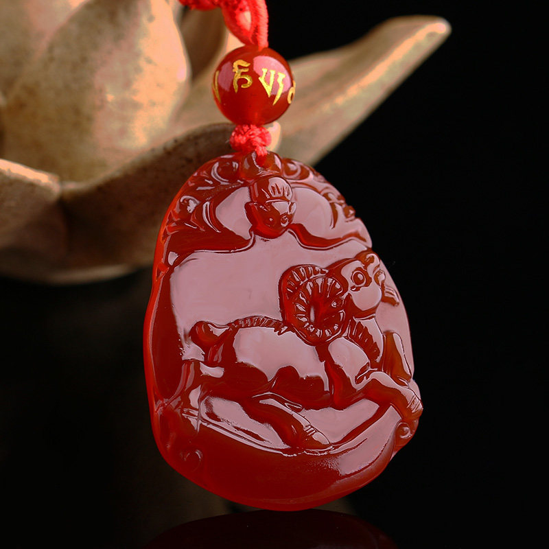开光红玛瑙生肖属羊吉祥物未宫化刃护身符 狮虎生威吊坠