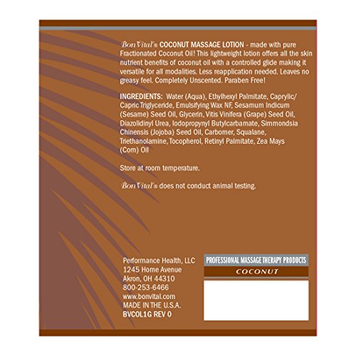 Studio : TheraBand Publisher : TheraBand Binding : Sports Product Description Bon Vital, the #1 preferred brand of massage therapists focusing on professional quality products, brings you a line of premium massage products enriched with pure 100% Fractionated Coconut Oil that can be used for all massage modalities and techniques. The Bon Vital Coconut line of creme, lotion, gel, and oil leverages the benefits of 100% Pure Fractionated Coconut Oil to provide intense hydration to dry skin. The unscented, water-dispersible formula is ideal for blending with Bon Vital essential oils to create the ultimate aromatherapy massage experience. 0