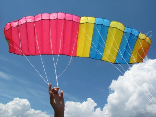 Sky Touch 3M Tricolor Dual-line Control Parafoil Parachute Stunt Sport Nylon Kite, with Handle & String, Park Beach Garden Fun
