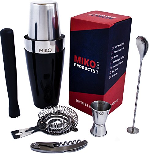 -. Title : Professional Bartender Kit - Cocktail Shaker Set - Includes Bar Tools: Boston Cocktail Shaker, Muddler, Strainer, Jigger, Bar Spoon, Corkscrew and Bonus Recipes EBook