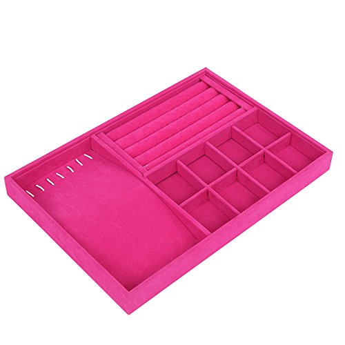-. Feature : Soft velvet stackable surface, Lined with a sackcloth fabric that prevent scratches, Durable and sturdy composite panel inside. / Tray dimension: 13.8" x 9.5" x 1.18"(L x W x H) / 3 compartments ideal for: Rings, earrings and charms/pendents, etc. 1 compartments ideal for rings, Bracelets, Anklets, earrings and nose ring, etc, Bracelets. 1 compartment ideal for necklace, 1 compartment ideal for all kins of rings / Ideal for home jewelry storage and decoration, shop displaying, Personal use or a perfect Gifts for Friends / Keeping your favourite jewelry on a convenient Jewelry Tray, Could be stacked on your drawer or dresser to save space and to accommodate your growing collection