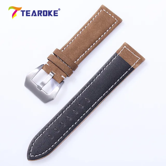 | [해외] TEAROKE 수제 매트 가죽 시계 밴드 남성 여성 18 미리메터 20 미리메터 22 미리메터 24 미리메터 스테인레스 스틸 버클 스트랩 파네 손목 갈색 |