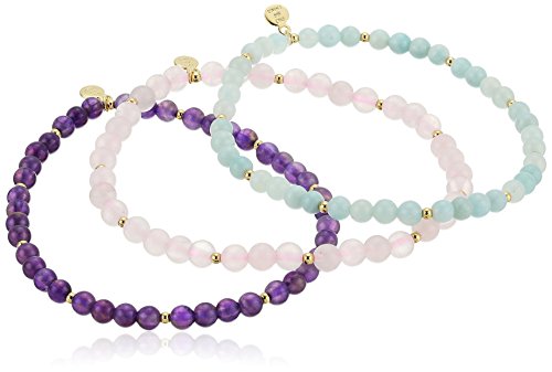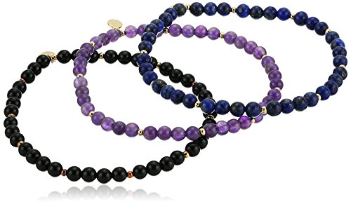 -. Title : Genuine Lapis, African Amethyst Gemstone and 18k Yellow Gold Plated Bronze Bead Bracelet, 6.5"
