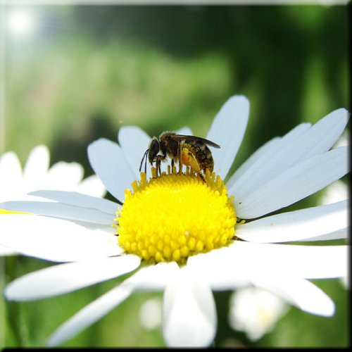 Rikki Knight RK-12intilec-9109 12" X 12" Bee on White Daisy Design Ceramic Art Tile