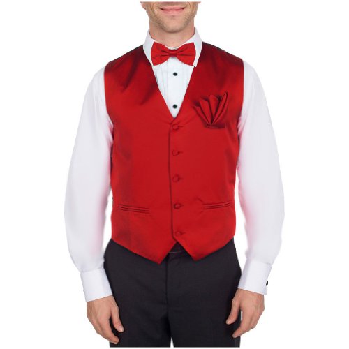 -. Binding : Apparel -. Brand : The Perfect Necktie -. Color : Red -. Department : mens -. Feature : Formal Vest with Pre-Tied Bow Tie and Pocket Square Set / High End & High Quality Microfiber / Stunning Red / 30 Day Money Back Guarantee / Ultimate value for your money! -. ProductGroup : Apparel -. ProductTypeName : SUIT -. Title : Red Formal Vest with Pre-Tied Bow Tie and Pocket Square Set