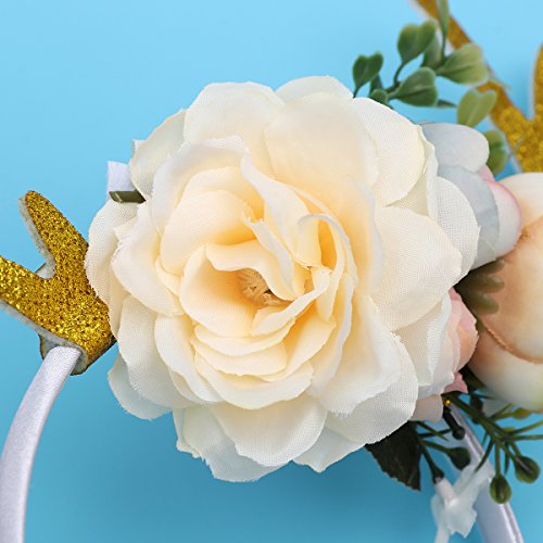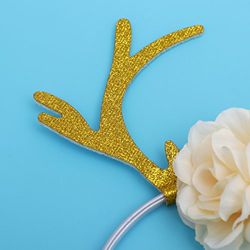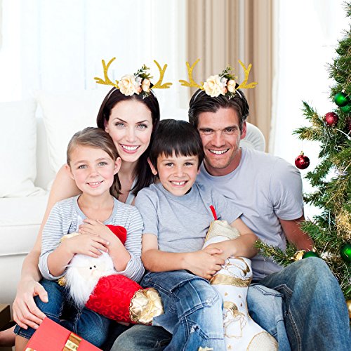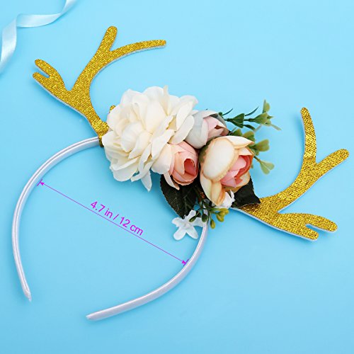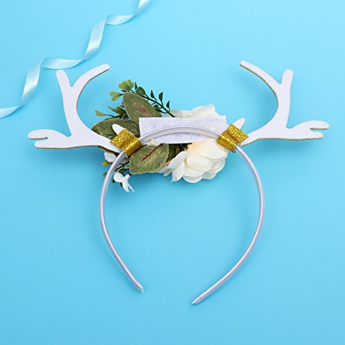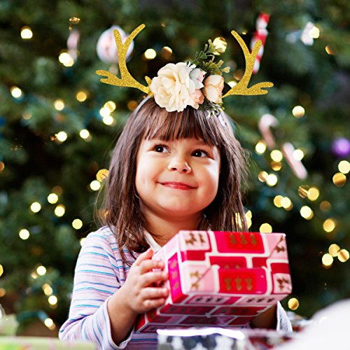 Package Including 1 x Kids Girls Funny Deer Antler Headband with Flowers Blossom Novelty Party Hair Band Head Band Christmas Fancy Dress Costumes Accessory (Khaki) 0