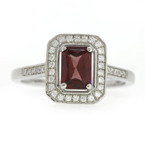 -. Title : Vintage Style Sterling Silver Emerald Cut Natural Mozambique Garnet Ring (1 1/5 CT.T.W)
