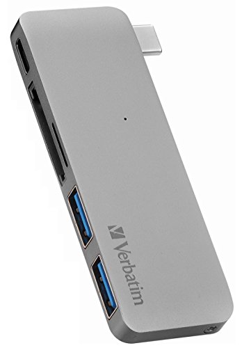 -. Feature : • Excellent extension adaptor ideal for Type-C devices such as Apple new MacBook, new MacBook Pro, Google Chromebook, Nokia N1, Surface Pro 4, Dell XPS13, Dell XPS15, Lumia 950, Lumia 950XL, Mi 4C, Lenovo ZUK1 and other Ultrabooks, NOT for MacBook Air series. Plug and play, NOT require any software, drivers, or complicated installation process. / • Comes with 5 ports for connecting a variety of storage media or accessories such as memory card, HDD, USB or mouse to your Type-C devices. The USB-C 5 Port Hub features 2 USB-A 3.0 ports, for fast data transfer. 1 USB-C port supports power charging up to 14.5V/2A, allowing you to simultaneously charge your USB-C laptop while working with other USB devices - even if your laptop only has one port. 2 slots for SD and microSD card supporting a great variety of card types. / • Can do the charging at the same time, with high quality metallic coated housing, CNC precision milled aluminum enclosure color matched to silver and space gray MacBook. We designed Verbatim to feel like a natural extension of Apple MacBook with similar product lines, thickness, right angled edges and rounded corners. / • Advanced Chipset: VIA VL100+VL813, mature and stable, compatibility is good, using advanced USB PHY technology, the USB 3.0 interface offers fast data transfer speeds, up to 5 Gbps, so transferring large files or multiple files simultaneously is a breeze. / • All of our products access to FCC CE RoHS and other international certification and meet global safety standards. Factory was awarded ISO9001. One year limited warranty.