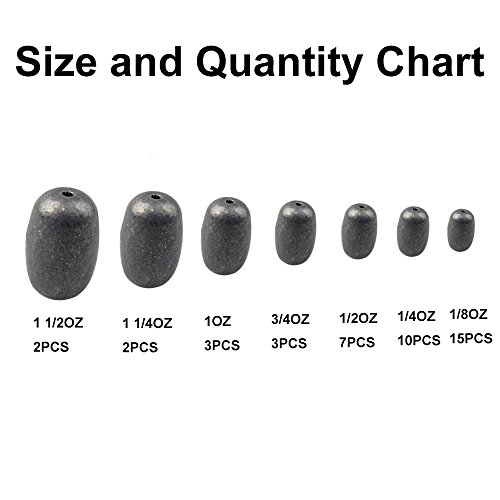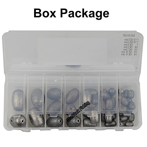 Studio : Shaddock Fishing Publisher : Shaddock Fishing Binding : Misc. Product Description Quantity: 42 Pcs Egg Sinkers Quantity and Size 2Pcs-1 1/2 Ounce, 2Pcs-1 1/4 Ounce, 3Pcs-1 Ounce, 3Pcs-3/4 Ounce, 7Pcs-1/2 Ounce, 10Pcs-1/4 Ounce, 15Pcs-1/8 Ounce Package: in a Free Reusable Plastic Box Which Can Easy to Carry and Storage High Quality and It Is a Great All-around Sinker for General Use Top Loop Makes It Easy to Tie on in a Specific Spot Weight Will Slide Up and Down the Line The Swivels Ensure Your Line Won't Get Twisted Up You Will Catch More Bigger Fishes with Our Assorted Egg Sinker Kit 0