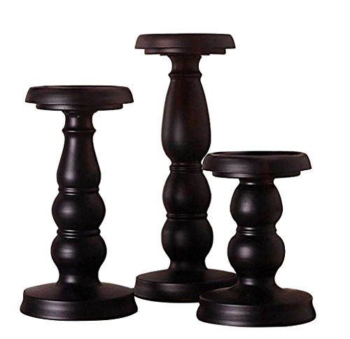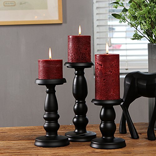 Retro Iron Candle Holder Table Candle Holder Romantic Wedding Ornament for Birthday Candlelight Dinner Home & Bar Decorative Light Simple Wedding Item (Black--3Pcs/set)