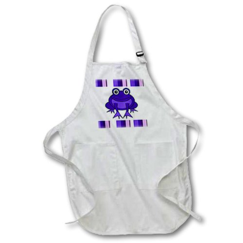 3dRose apr_24658_2 Cute Happy Purple Frog with Stripes-Medium Length Apron with Pouch Pockets, 22 by 24-Inch