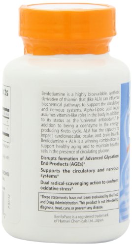 -. Binding : Health and Beauty -. Brand : Doctor's Best -. Label : DOCTOR'S BEST -. Manufacturer : DOCTOR'S BEST -. PackageQuantity : 1 -. ProductGroup : Health and Beauty -. ProductTypeName : HEALTH_PERSONAL_CARE -. Publisher : DOCTOR'S BEST -. Studio : DOCTOR'S BEST -. Title : Best Benfotiamine 150 + Alpha-Lipoic Acid 300