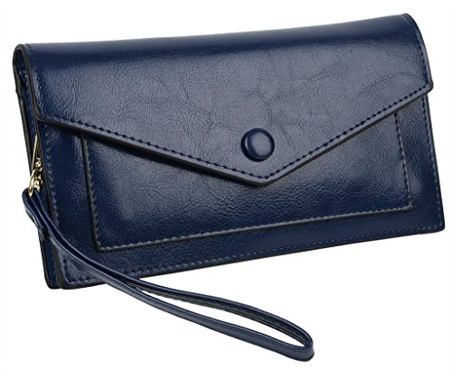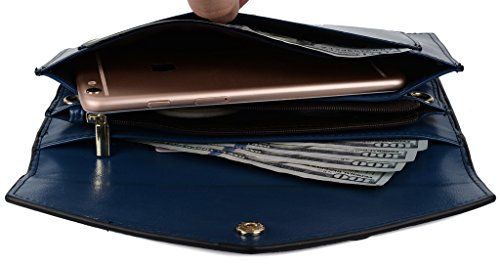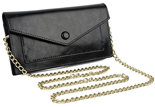 -. Title : YALUXE Women's Large Capacity Genuine Leather Wristlet Wallet with Metal Shoulder Chain