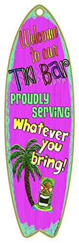 Tiki Bar Serving What You Bring Nautical Ocean Surfboard Sign 5"x16"
