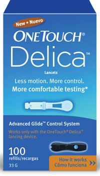 -. Feature : For use with the One Touch Delica lancing device. / 100 Lancets per box (33 gauge) / Glide Control for more precise lancing / Reduced vibration for smoother lancing / Thinnest needle from One Touch