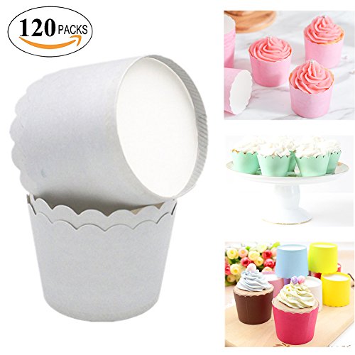 Lesirit Solid color Paper Baking Cups, Standard Size Cupcake Liners Wrappers for Birthday Party Wedding Baby Shower Baking Decoration (120, Light Grey)
