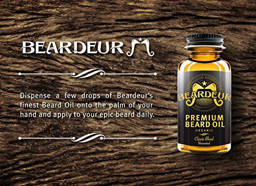 ➊ MASTERFULLY HANDCRAFTED ORGANIC BEARD OIL by Beardeur - Bearded men were turning heads long before The New York Times declared facial hair fashionable. There's just something about a well-groomed guy that makes you stop and stare. You'll also notice when there's a hair askew, or the way the not-so-sexy scruff feels against your face.Luckily, there's a beard care product like Beardeur's Premium Unscented Beard Oil that can definitely help you looking great.