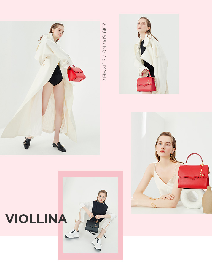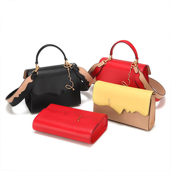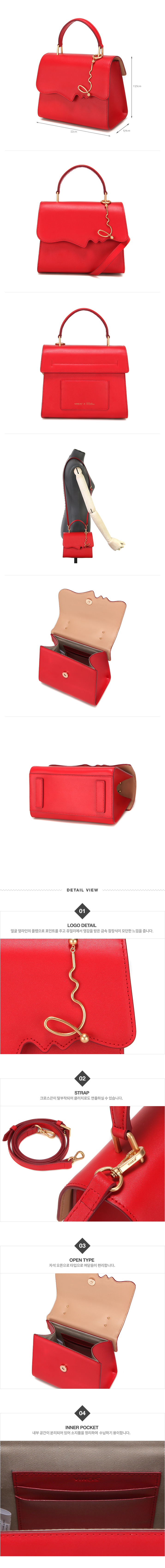 부드러운 굴곡의 얼굴 옆라인의 유니크한 디자인 포인트를 심플한 박스형태 쉐입의 가방에 매칭되어 유니크하지만 부담스럽지 않게 착용 가능함.
