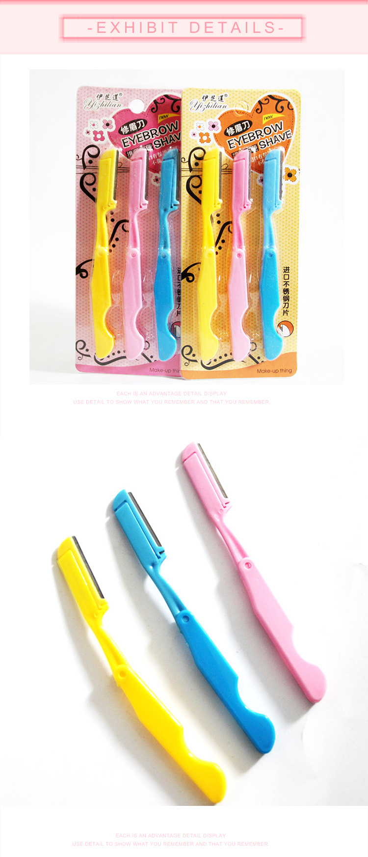 3Pcs Eyebrow Hair Removal Razors (Color will be sent randomly.)