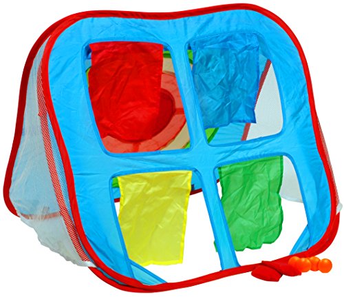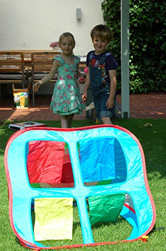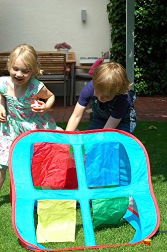Inhalt: Zauberzelt mit Zielscheibe und 4 Fenstern, 4 Wurfsäckchen, 4 Klettbälle, 4 Heringe zur Fixierung des Zeltes