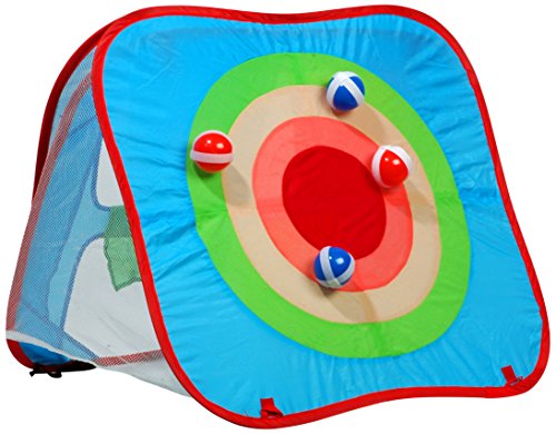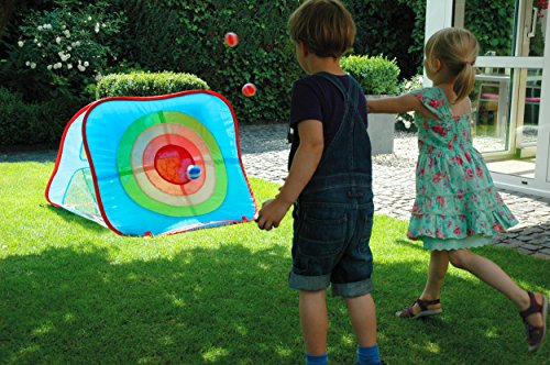 2 Zielwurfspiele in einem: Zielscheibe mit 4 Klettbällen + 4 Wurffenster mit 4 Wurfsäckchen