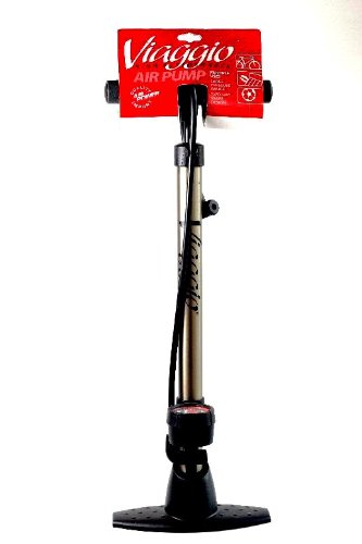 -. Feature : The Viaggio is the natural choice for road bikes, mountain bikes or whenever accurate air pressure is essential / Onboard easy-read 2 feet pressure gauge / Convertible thumb lock connector to fit Schrader and Presta valves / Heavy gauge 1-1/4 inch steel barrel is welded to a steel base for increased durability / 160 PSI rating - high pressure