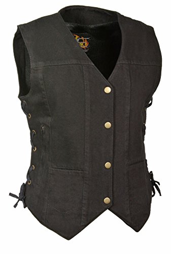 -. Binding : Apparel -. Brand : Milwaukee Leather -. Color : Black -. Department : womens -. Feature : Using 14oz Denim - 100% Cotton / Two Lower Zippered Hand Pockets / One Panel Back - Perfect for Patches or Embroidery / Side Lace Detailing for Optimal Fit / Built in Dual Side Concealed Weapon & Ammo Pocket -. PackageQuantity : 1 -. ProductGroup : Apparel -. ProductTypeName : OUTERWEAR -. Title : Women's 6 Pocket Side Lace Denim Vest w/ Gun Pockets (Black,)