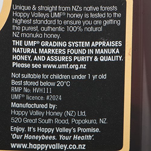 UMF 5+ (MGO 80+) manuka honey from the pristine native forests of New Zealand. This Happy Valley UMF manuka honey is lab-certified to UMF 5+ standard, equivalent to methylgloxal (MGO) 80+