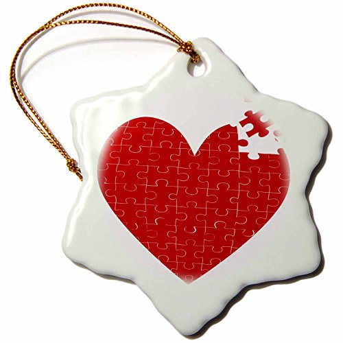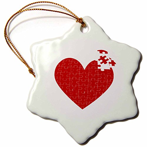 3dRose orn_101614_1 Large Red Heart Made of Puzzle Pieces-Snowflake Ornament, Porcelain, 3-Inch