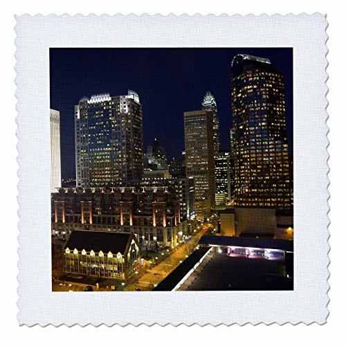3dRose qs_93247_3 Skyline of Charlotte North Carolina at Dusk-US34 DGU0000-Darrell Gulin-Quilt Square, 8 by 8-Inch